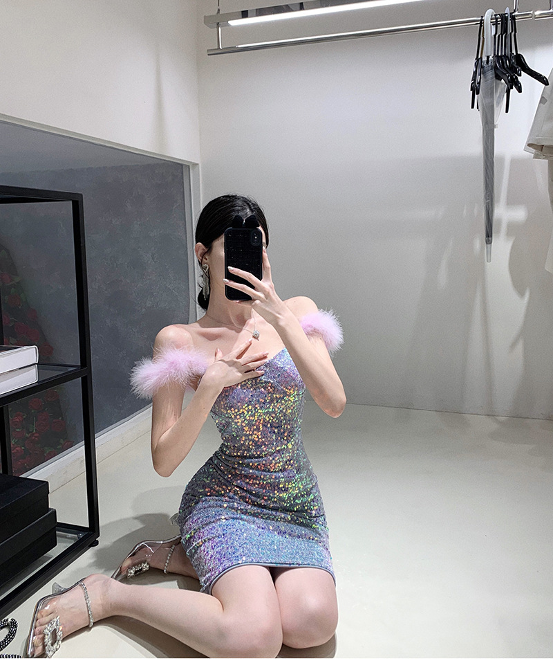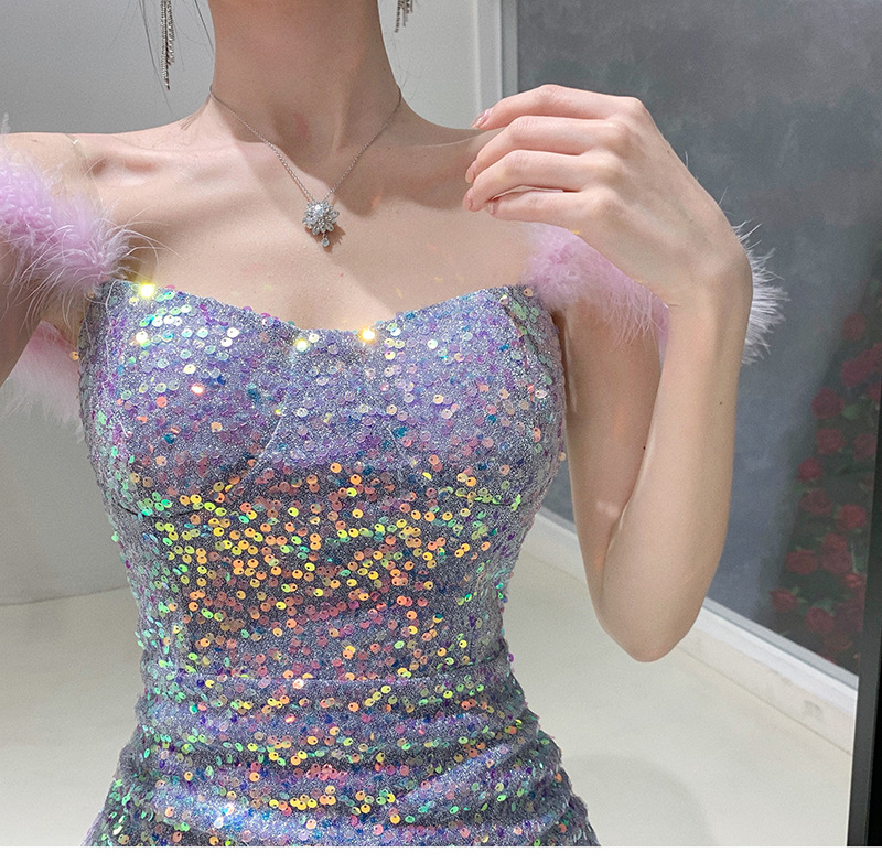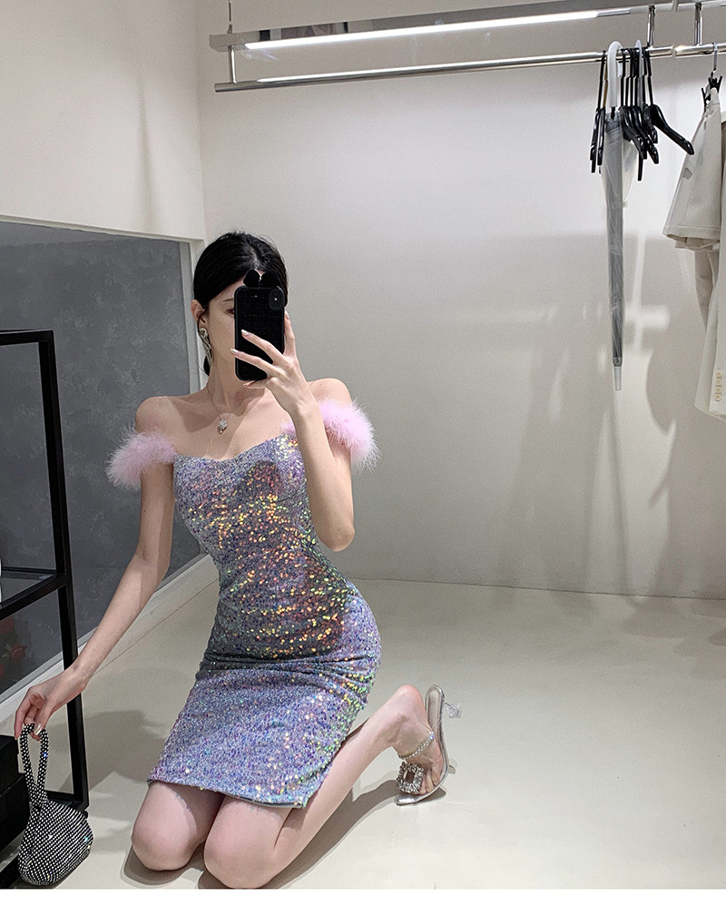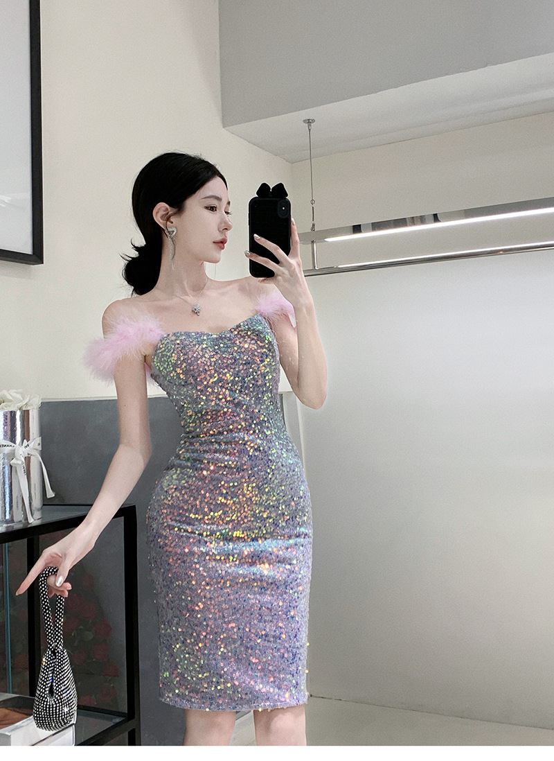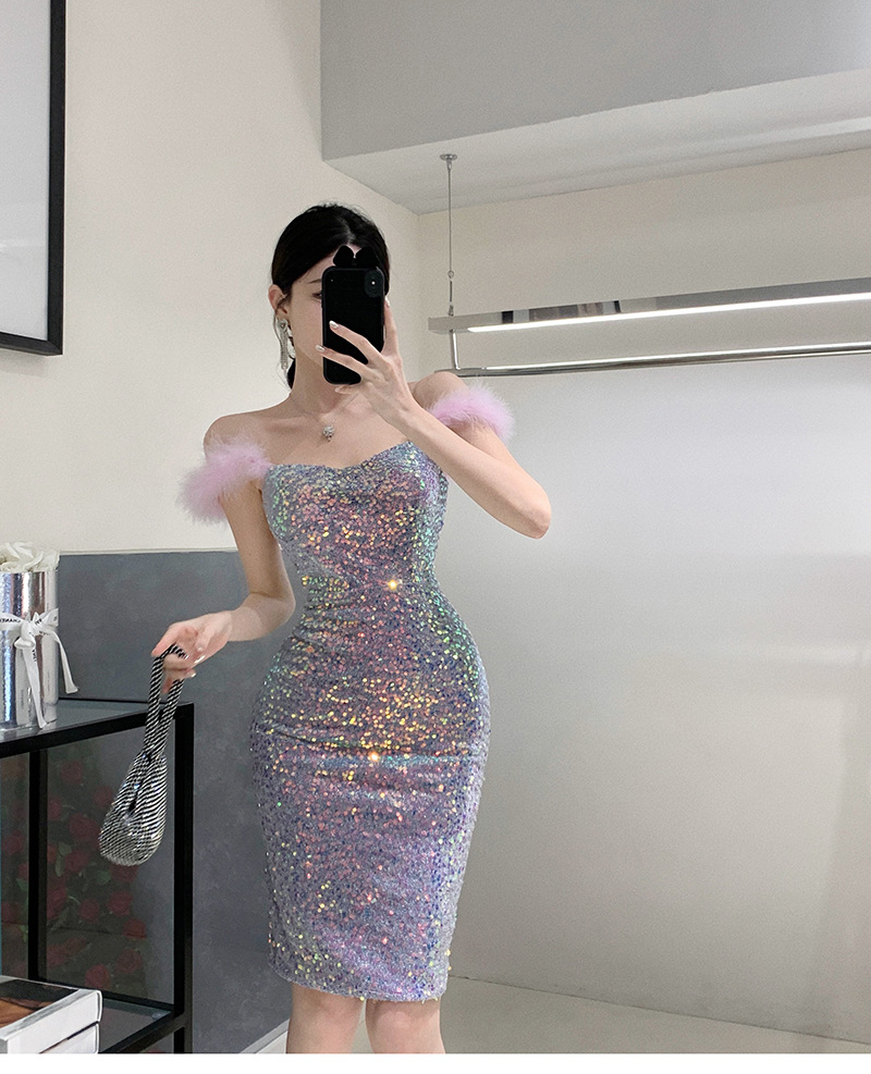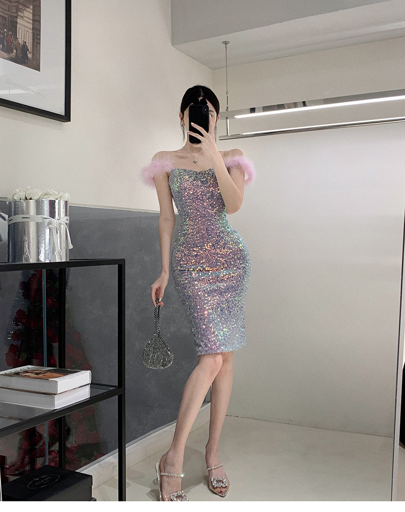 Elegant Shoulder-baring One-word Socialite Gathering Dress