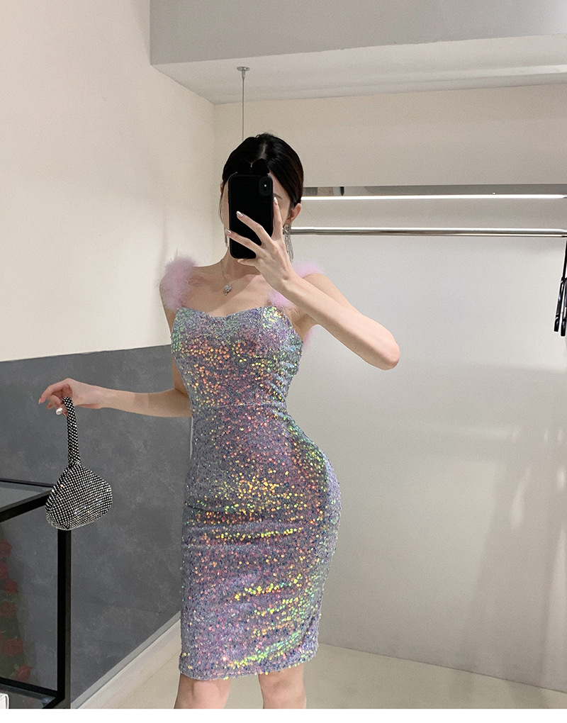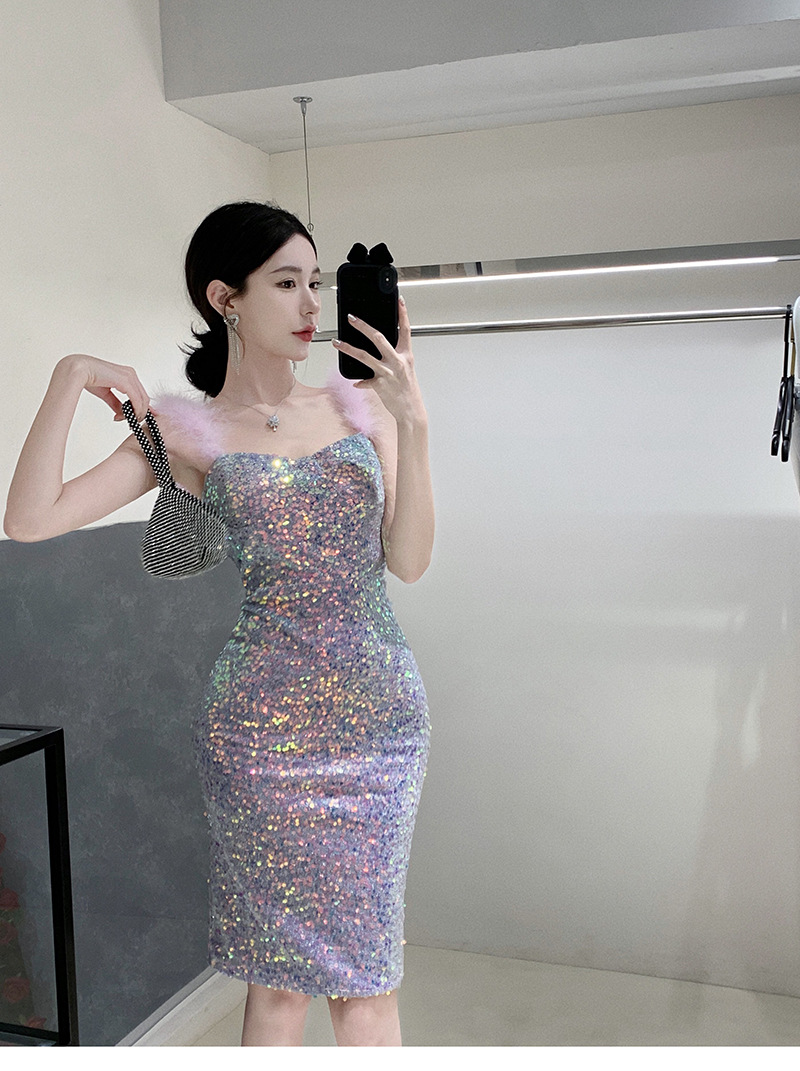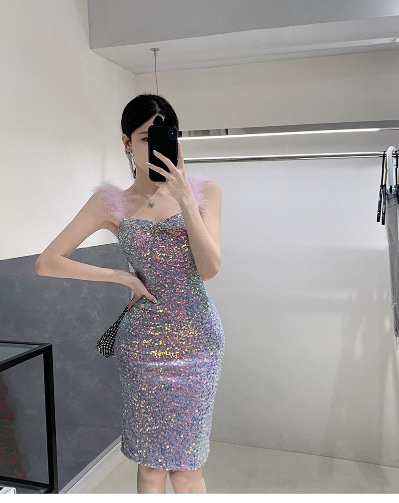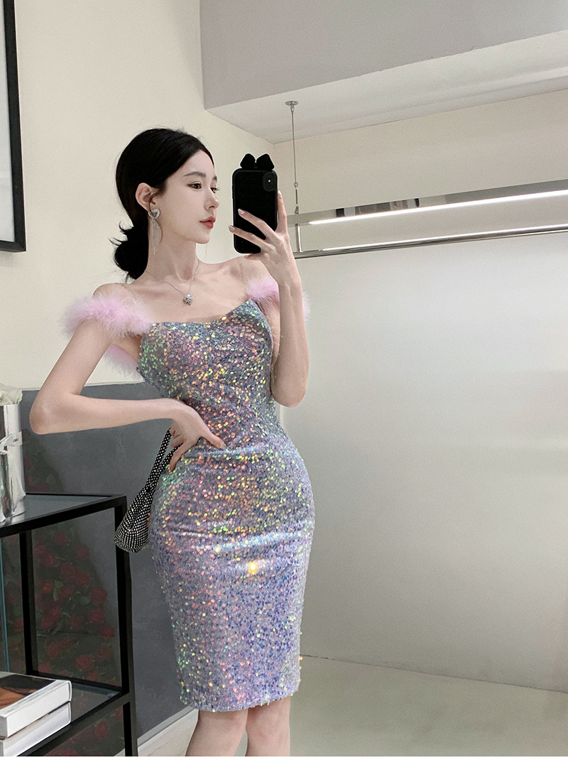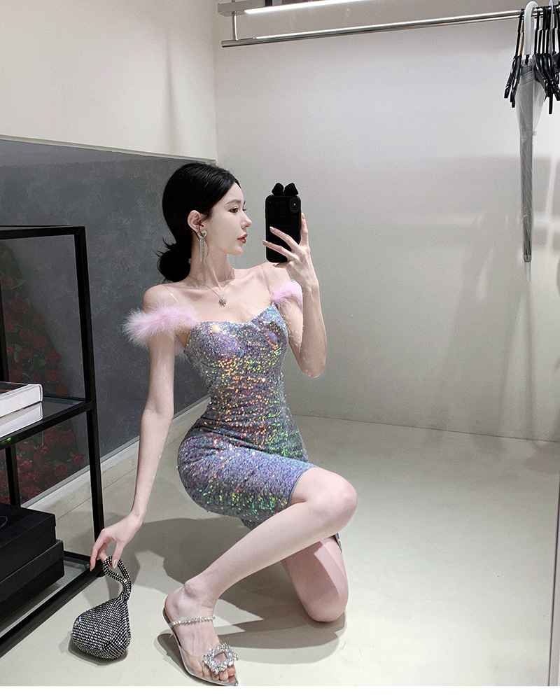 Elegant Shoulder-baring One-word Socialite Gathering Dress