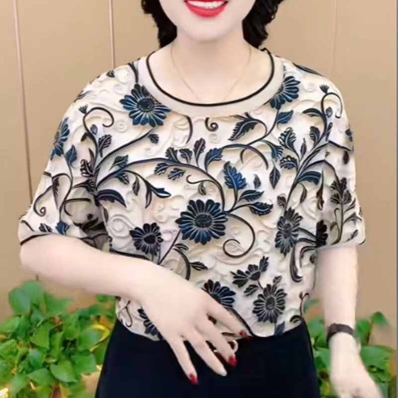 Fashionable Middle-aged And Elderly Design Sense Western Style Youthful-looking Short Sleeve