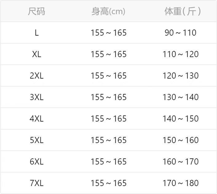 Size: L,XL,2XL,3XL,4XL,5XL,6XL,7XL